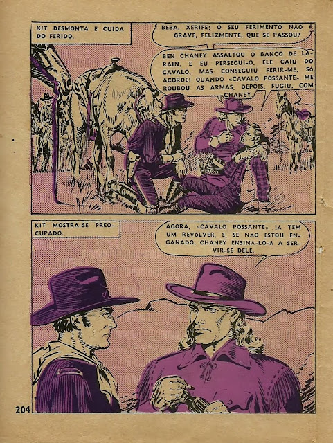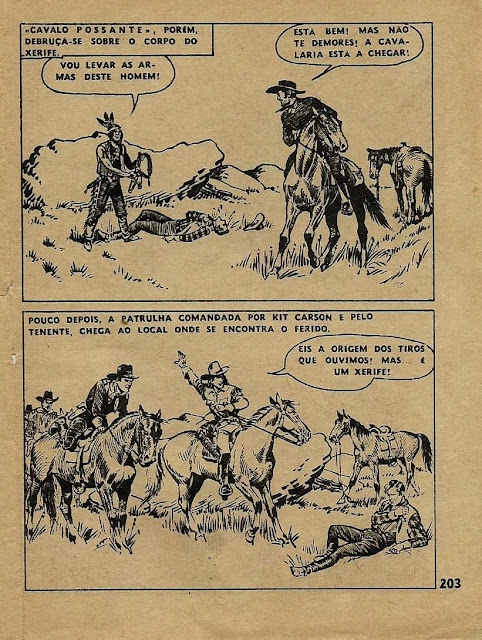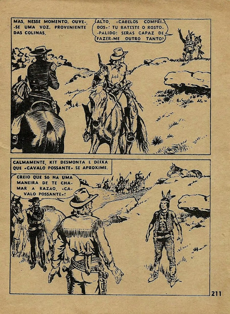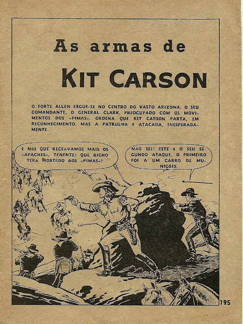 Neste dia dedicado a Kit Carson, começamos pela publicação integral de um fascículo da revista Condor Popular, o número 7 do volume 29. O fascículo não indica data nem apresenta autoria, mas é atribuída a Peter Gallant por BD Nostalgia. A história é engraçada e bem desenhada. O fascículo é completado por uma aventura de Jim Bowie numa história curta, mas de forte emoção.