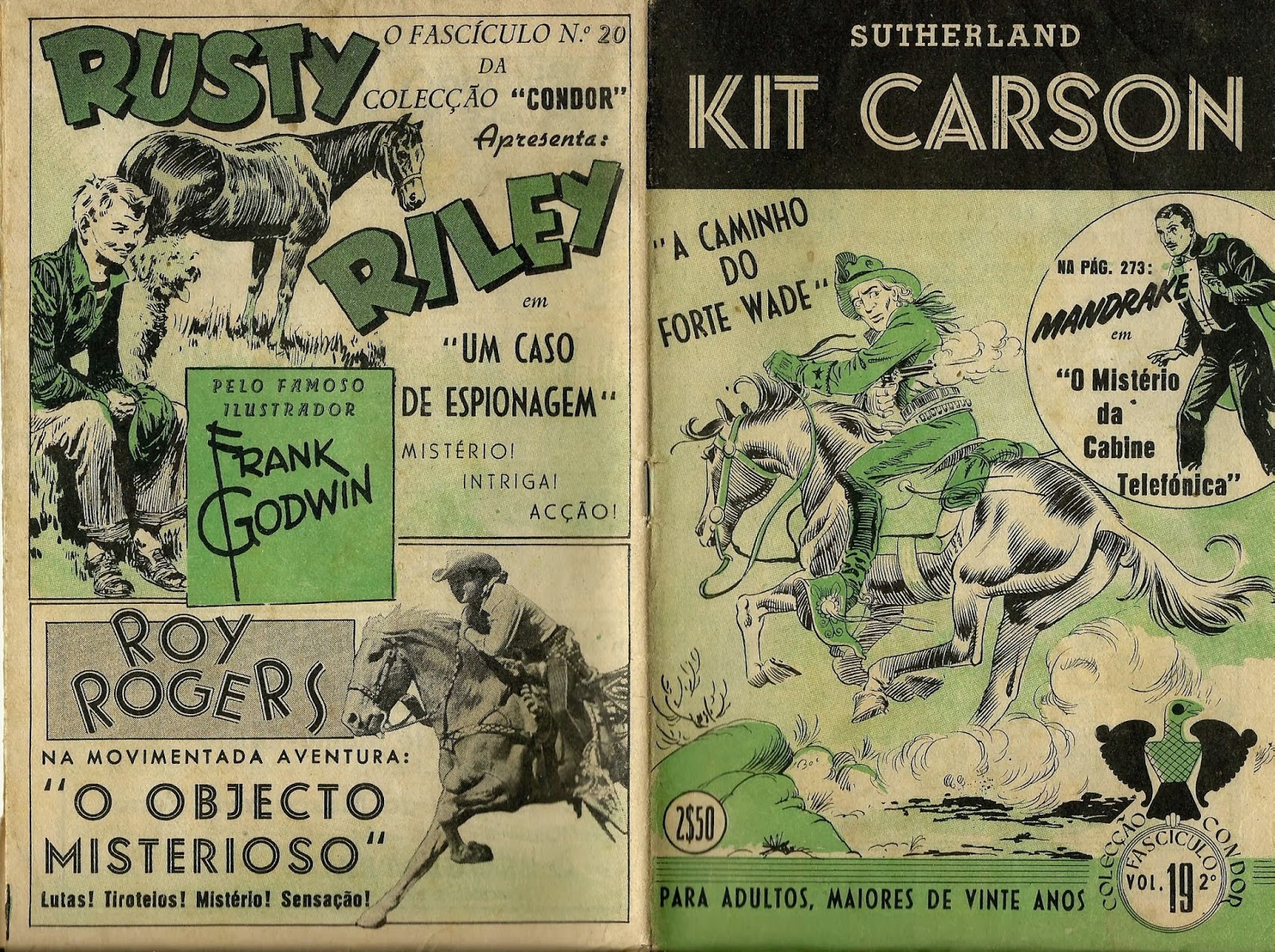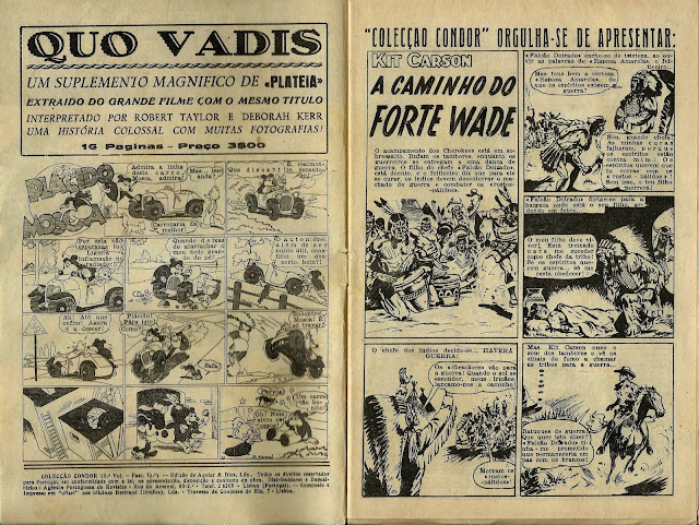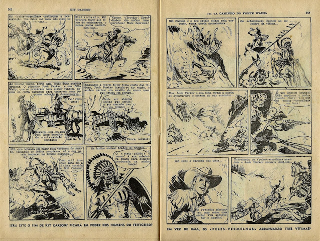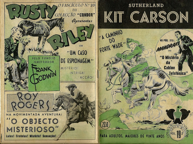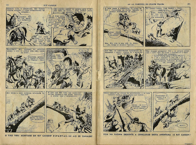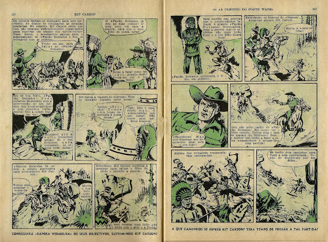 Apresentamos de seguida a digitalização de parte do notável fascículo 19 da Coleção Condor. Trata-se de uma aventura emocionante de Kit Carson, desenhada por Sutherland, talvez a primeira BD que vi e em que me impressionavam alguns desenhos por ainda não os saber interpretar.