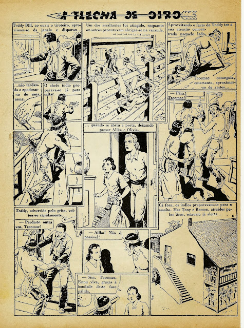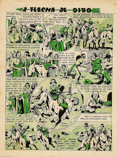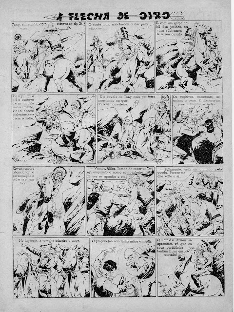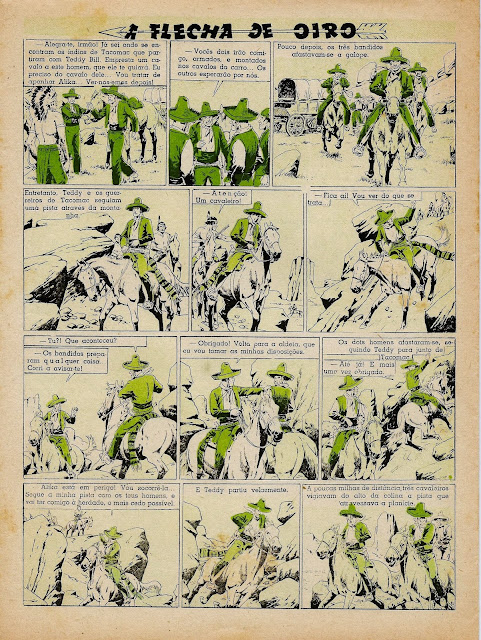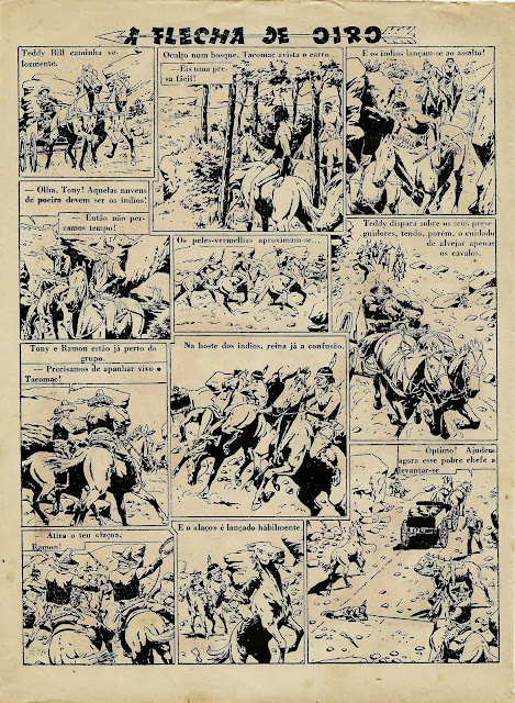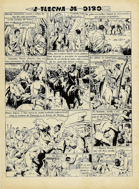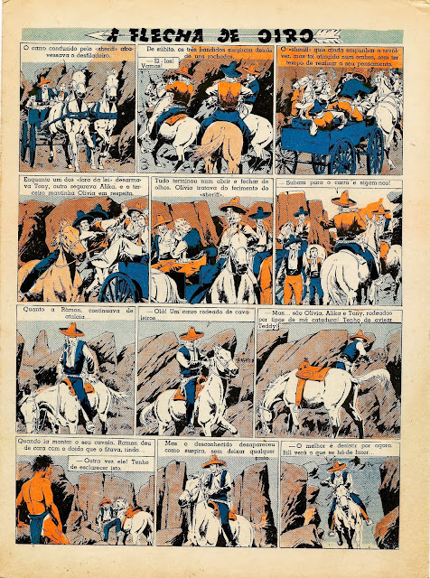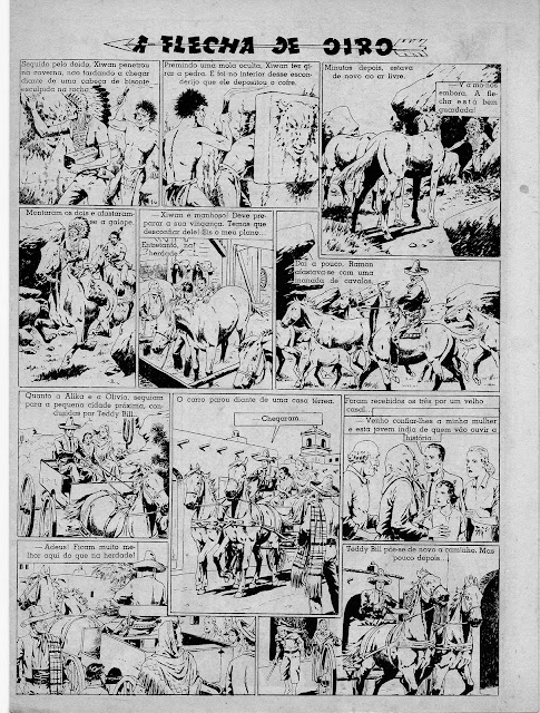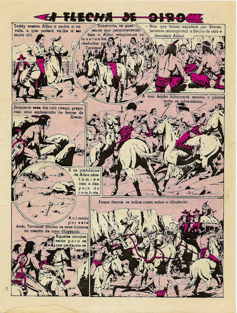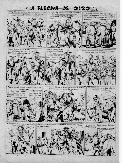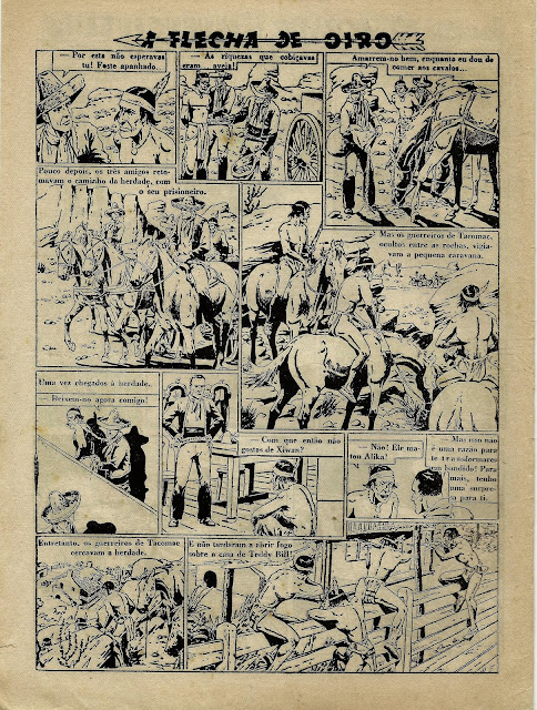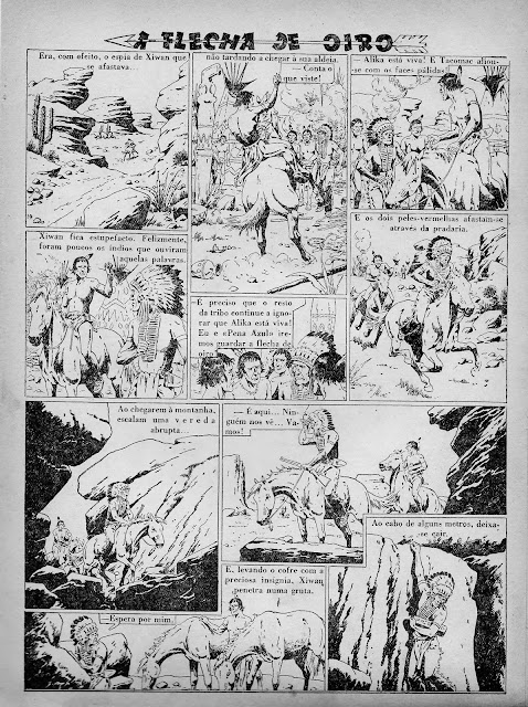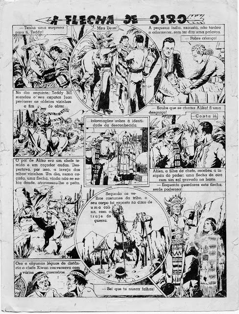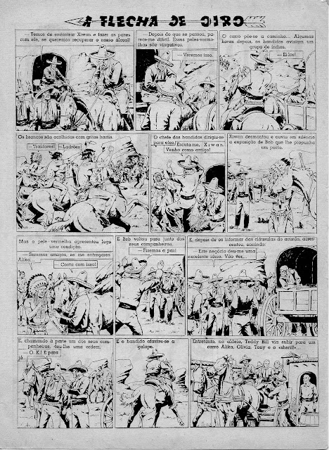 Apresentamos a digitalização de uma BD bem velhinha publicada nos números iniciais do Cavaleiro Andante entre o número 1 e o 32. Uma princesa índia é perseguida por um traidor que lhe pretende roubar o papel de líder graças ao fato de se ter apoderado da Flecha de Oiro, símbolo desse poder. Mas a princesa é encontrada por uma rapariga branca que a vai ajudar levando-a para o seu rancho. Note-se a má qualidade do papel e da impressão: por vezes vê-se o desenho existente nas costas da folha digitalizada.