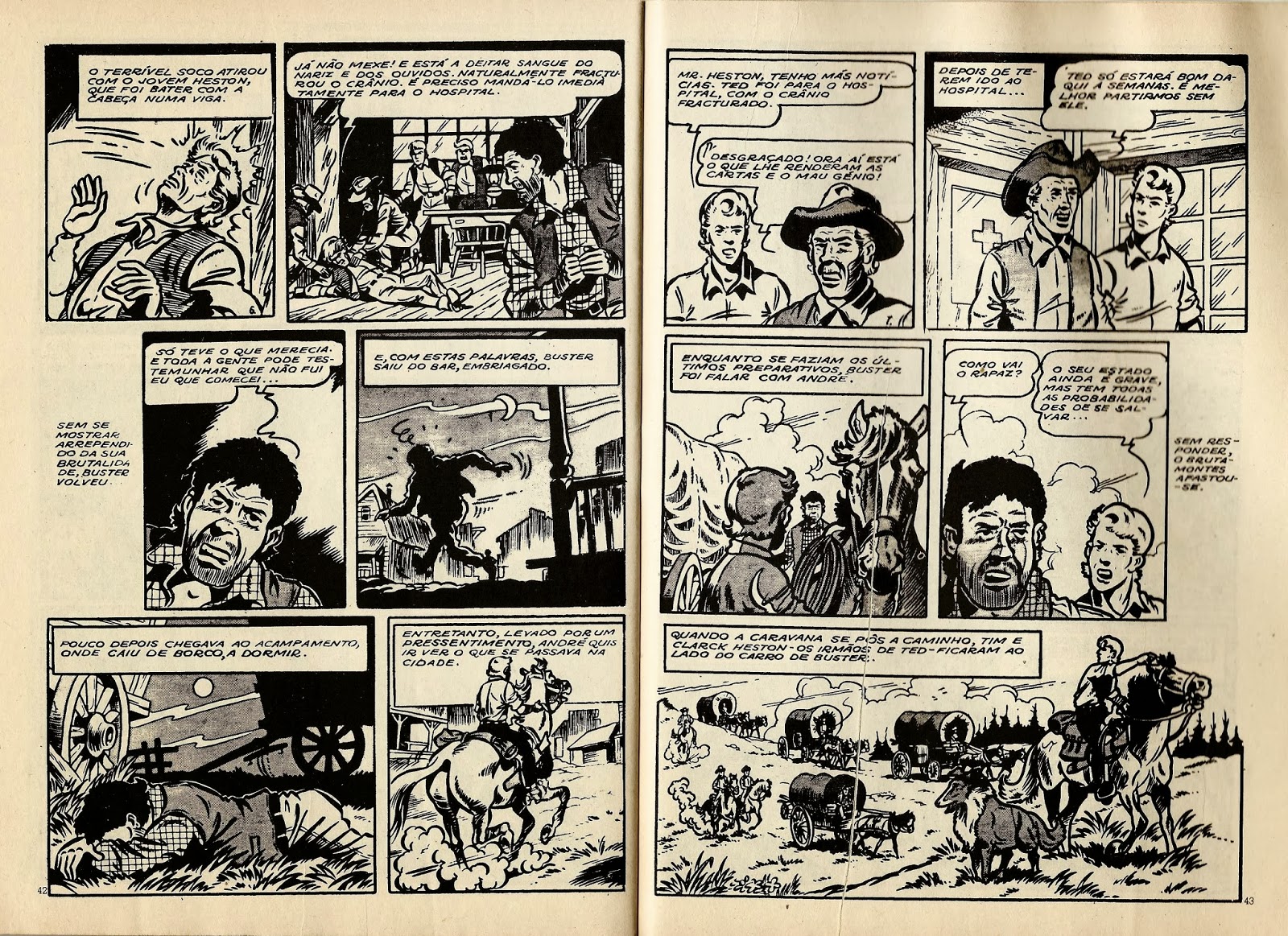 Publicamos a digitalização de mais uma aventura de Bessy surgida no semanário Zorro, nos fascículos entre o 88 e o 94. Trata-se de mais uma bela história que faz cruzar um criminoso com uma criança perdida da caravana em que seguia para o Oeste. No fundo, o homem nem era mau e, com a ajuda de Bessy, a criança acabou por voltar ao seio da família. A digitalização apanhou ainda passagens sobre Romy Scnheider e Kirk Douglas, muito famosos na época...