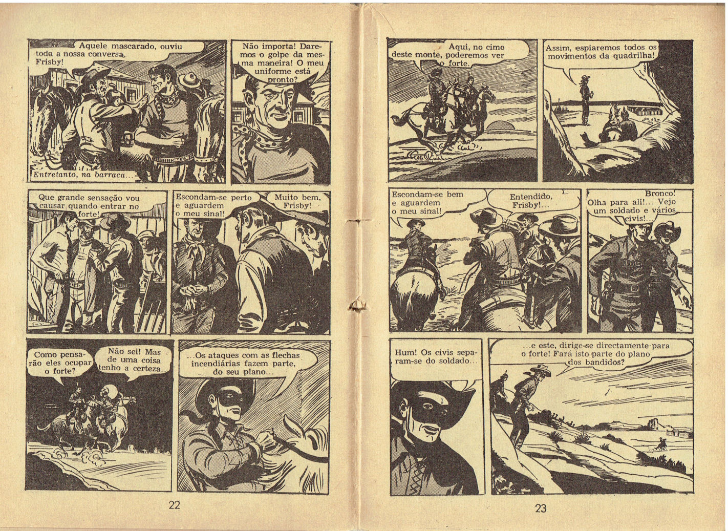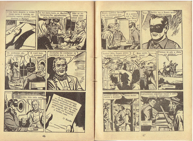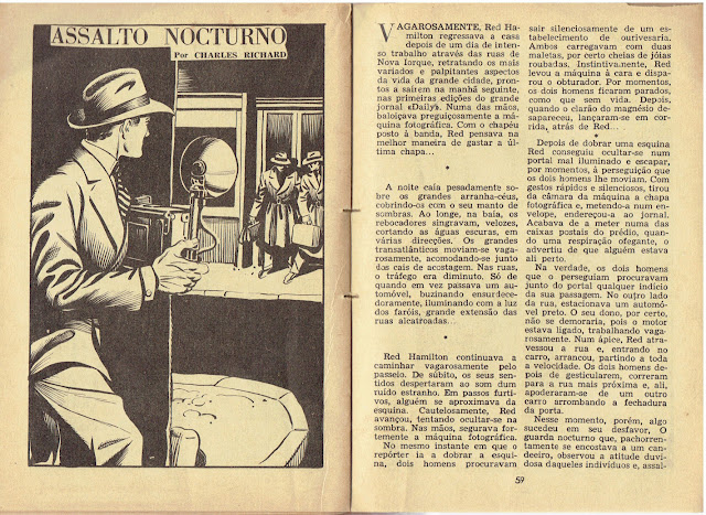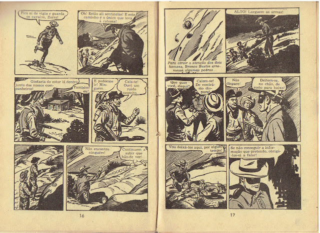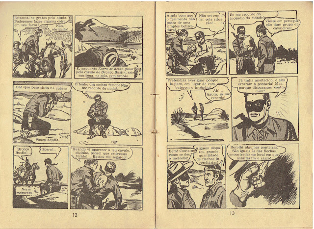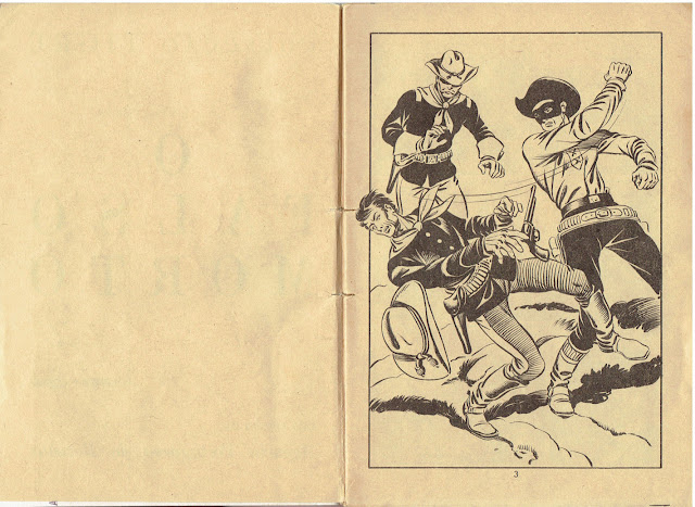 As aventuras do Máscara Negra voltam ao nosso blog desta vez através de um álbum publicado na Coleção Tigre, número 6. As páginas da aventura são apresentadas sem qualquer tratamento para além do corte e «endireita». Suspeito que a contracapa apresentada não é deste volume já que apresenta álbuns publicados muito posteriormente a uma distância de vários anos. Quanto à história em si, já todos calculam que o Lone Ranger é chamado a decifrar algo praticado por alguém que se julga morto. Este volume da Tigre é complementado pelo conto «Assalto noturno» assinado por Charles Richard, com certeza mais um português disfarçado. Este conto tem ilustrações de Carlos Alberto Santos. Mas o melhor é ler...