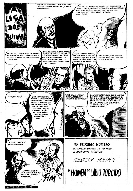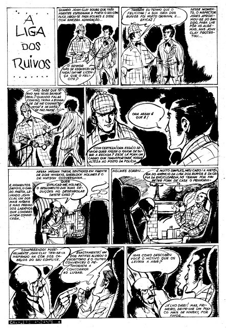 Recentemente, o Público publicou uma série de livros com aventuras deste célebre detective. Entre elas estava a que foi objeto de tratamento por Fernando Bento e devo dizer que a adaptação é notável e extremamente fiel. A publicação ocorreu na Cavaleiro Andante, fascículos 340 a 353, num momento em que esta revista iniciou a publicação de novas histórias na sua totalidade, apresentando em simultâneo três desenhadores portugueses: Bento, Péon e Garcês ao lado de grandes estrelas internacionais.