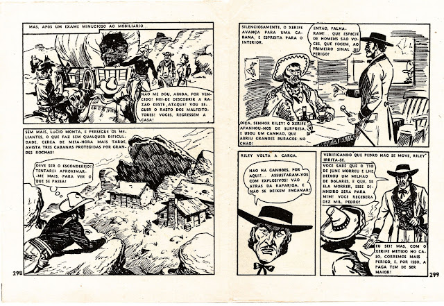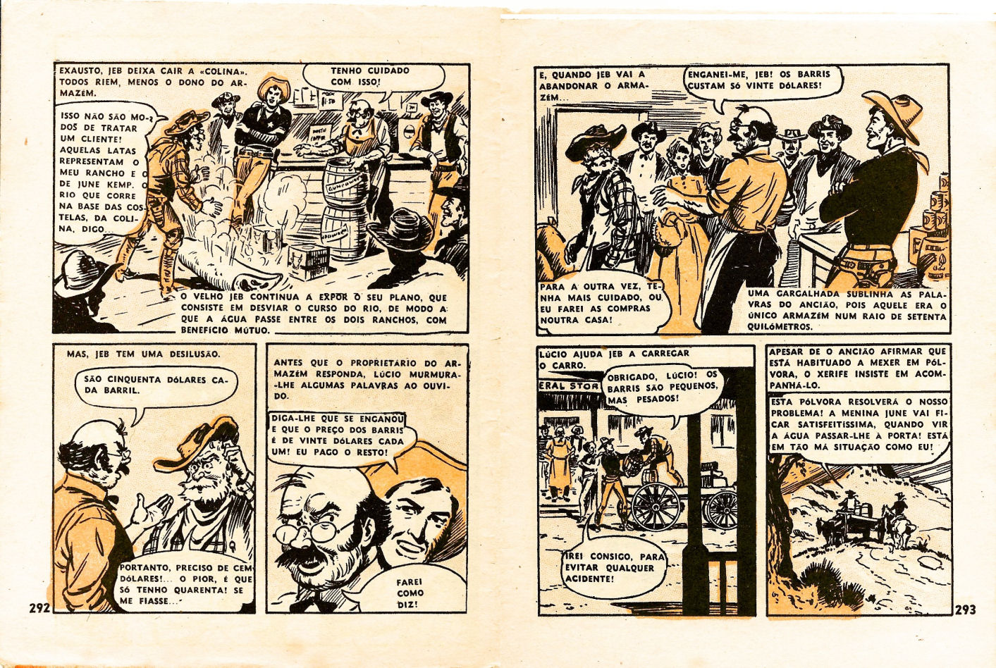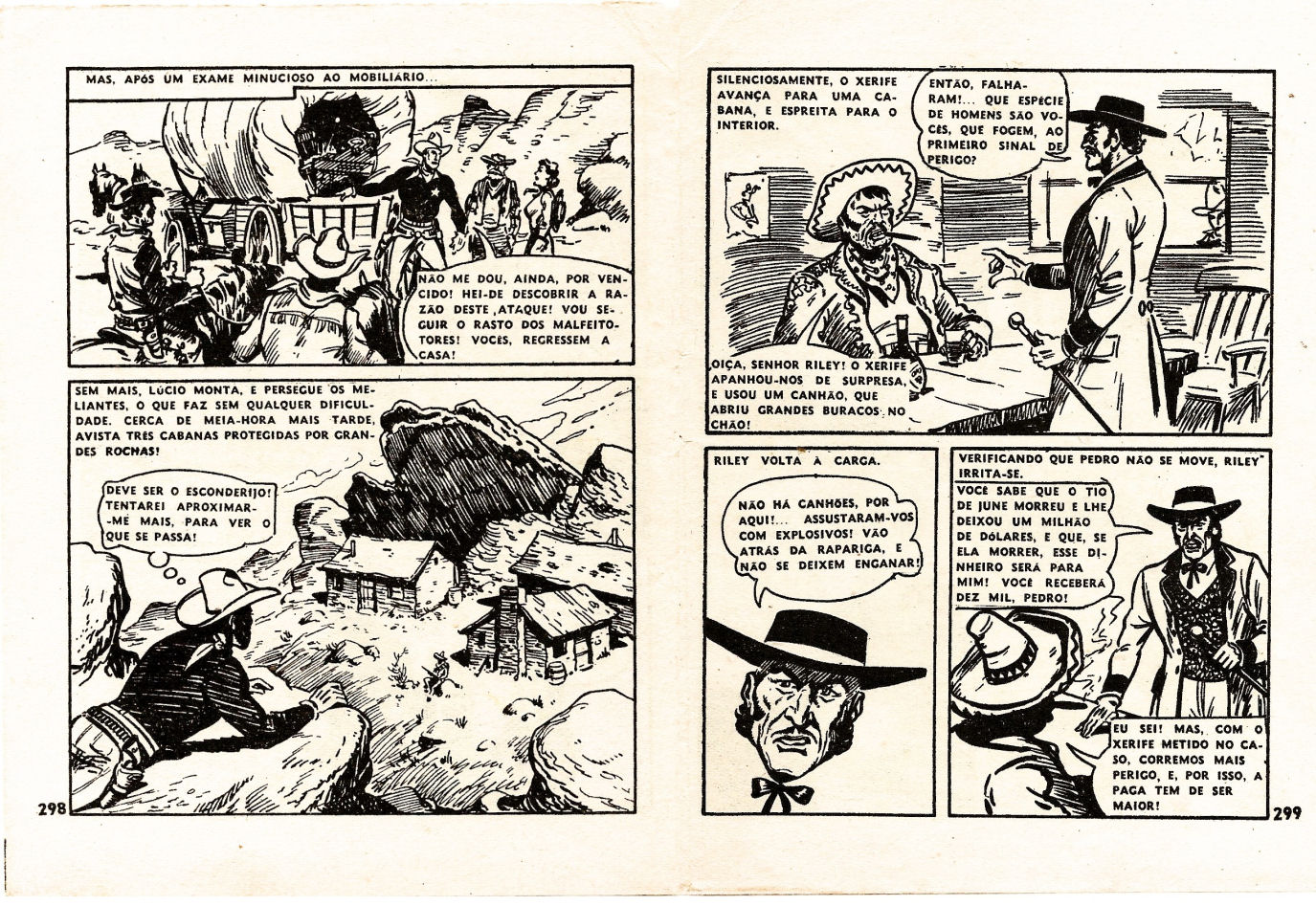 June estava à frente das reses que, cegas, corriam desenfreadamente. Parecia que uma morte terrível estava preparada para ela. Mas o nosso xerife, no seu fiel cavalo «Prata», conseguiu salvá-la.