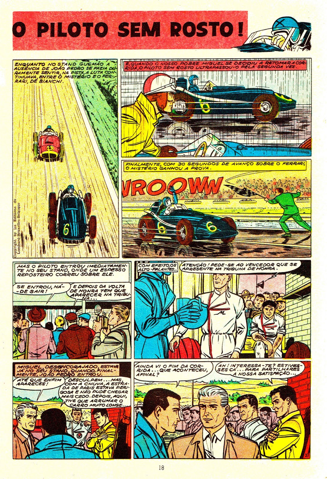 Como o sr. Gusmão lhe recusou o desenvolvimento de um projeto de automóvel, o malandro do João Pedro decidiu participar mascarado numa importante prova automobilística criando monumental confusão entre todos os concorrentes. Quem seria o piloto sem rosto? Steve Warson? Um russo?