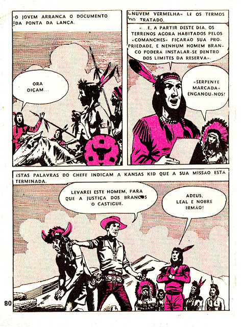A paz entre brancos e índios nunca foi muito segura e, inúmeras vezes, foram os primeiros que não a respeitaram. Nesta aventura de Kansas Kid, o grande responsável pelo machado de guerra ter sido desenterrado foi um terrível feiticeiro danado por perder o poder. O vaqueiro apoiou tropas dizimadas pelos índios e, com a ajuda de um jovem mais educado, conseguiu desmascarar aquela erva daninha.