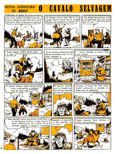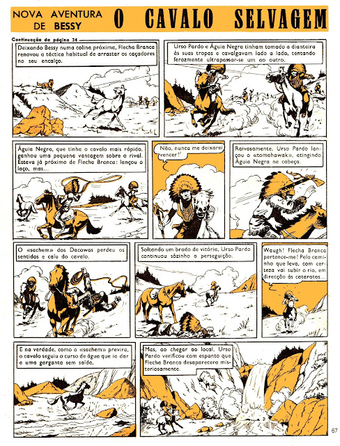 «Cavalo selvagem» ou «Cavalo fantasma»? Qual o melhor título para esta aventura de Bessy que foi publicada no Cavaleiro Andante especial de Natal de 1957? A avaliar pelo conteúdo, talvez a segunda designação fosse a mais apropriada para um cavalo que aparecia fantasmagoricamente aos índios e que não permitiu que um feiticeiro sem escrúpulos tivesse utilizado um «clone» para se promover. Escusado será dizer que Bessy teve papel relevante.