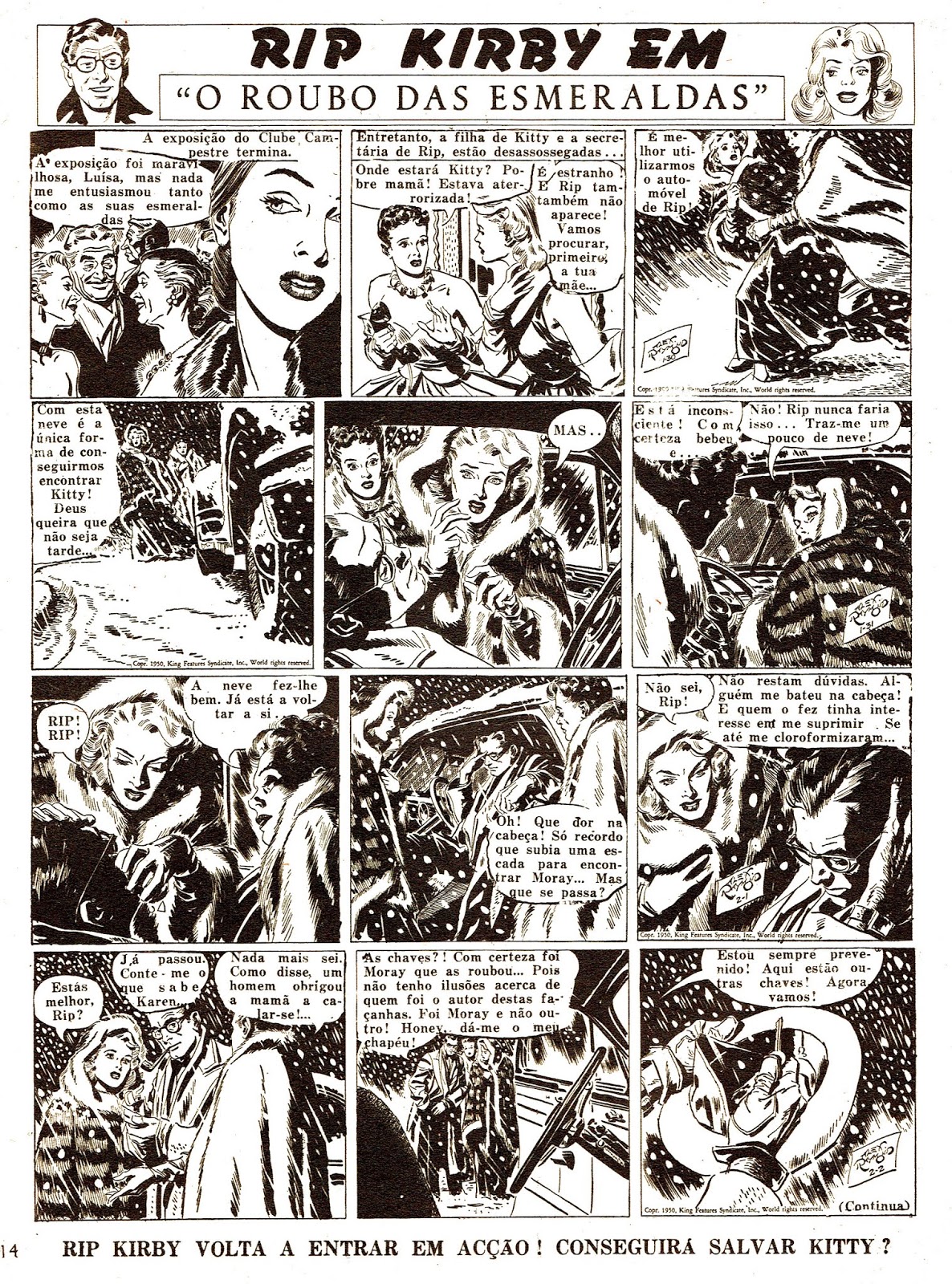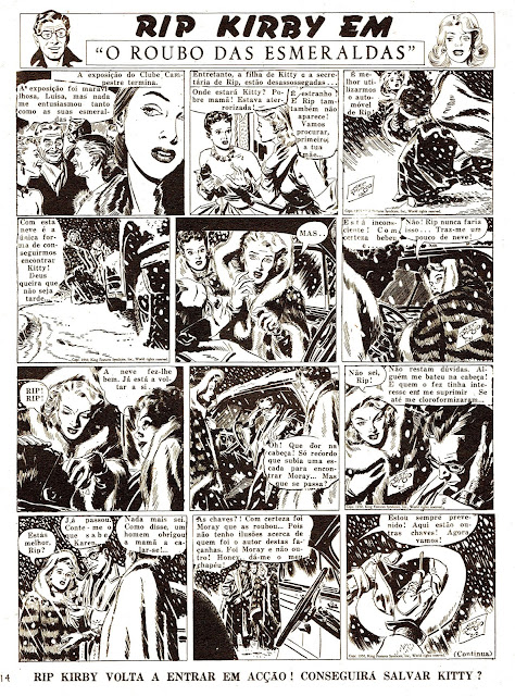 Esta aventura de Rip Kirby estreou-se no fascículo 51 do Mundo de Aventuras e prolongou-se até ao 73. O trabalho é assinado por Alex Raymond, mas a capa pertence a Vitor Péon, nesta altura uma espécie de desenhador de serviço. Mas a Honey do Alex é muito mais gira que a Honey do Péon.