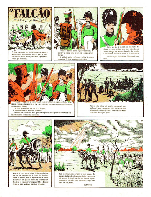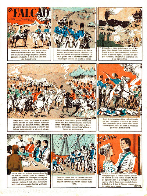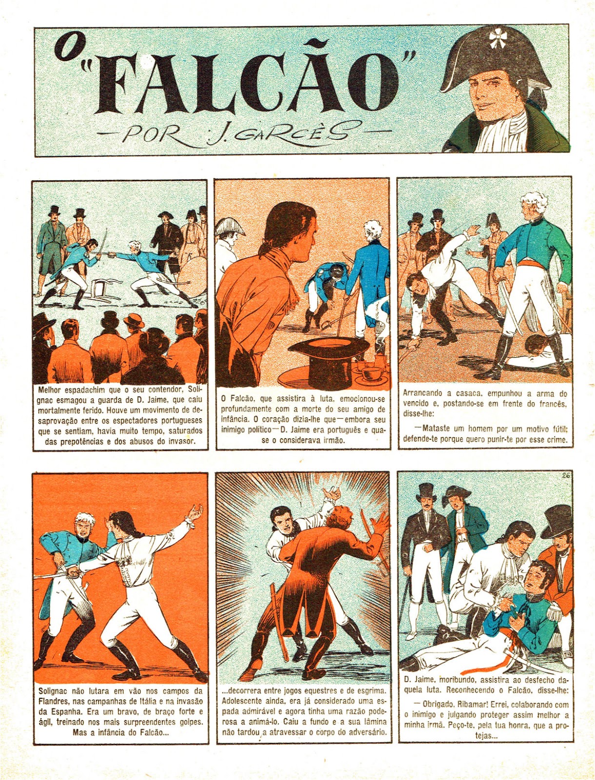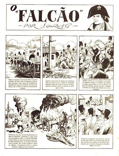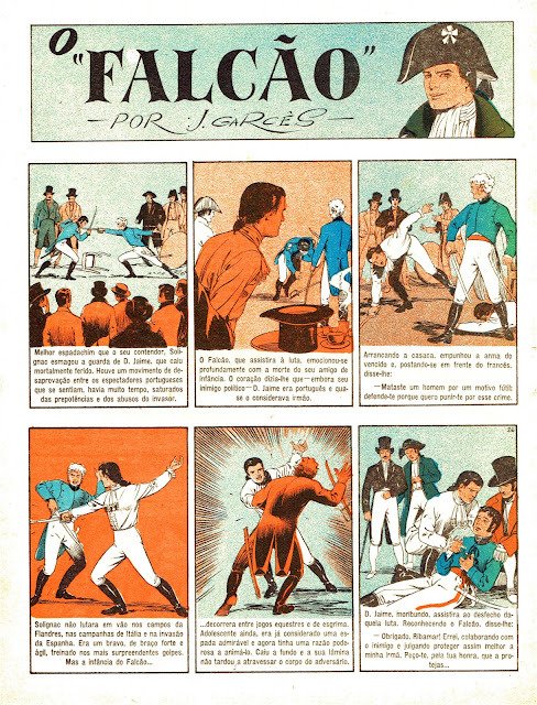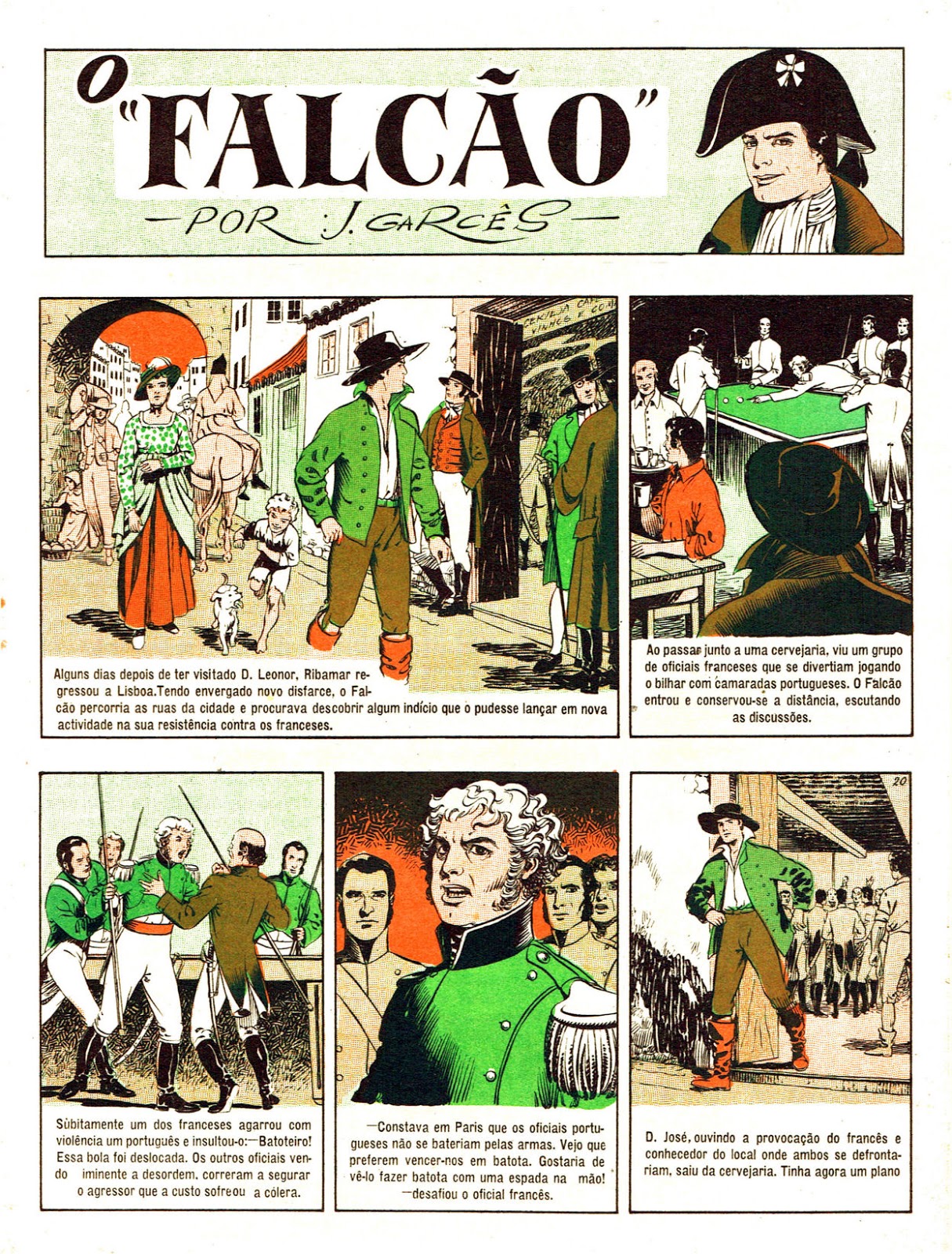 Eis mais um notável trabalho de Garcês, este retratando a resistência do povo português às invasões napoleónicas e denunciando o colaboracionismo de alguns oficiais. «O Falcão» foi publicado nos fascículos 73 a 103 do Cavaleiro Andante, com início em 23 de Maio de 1953.