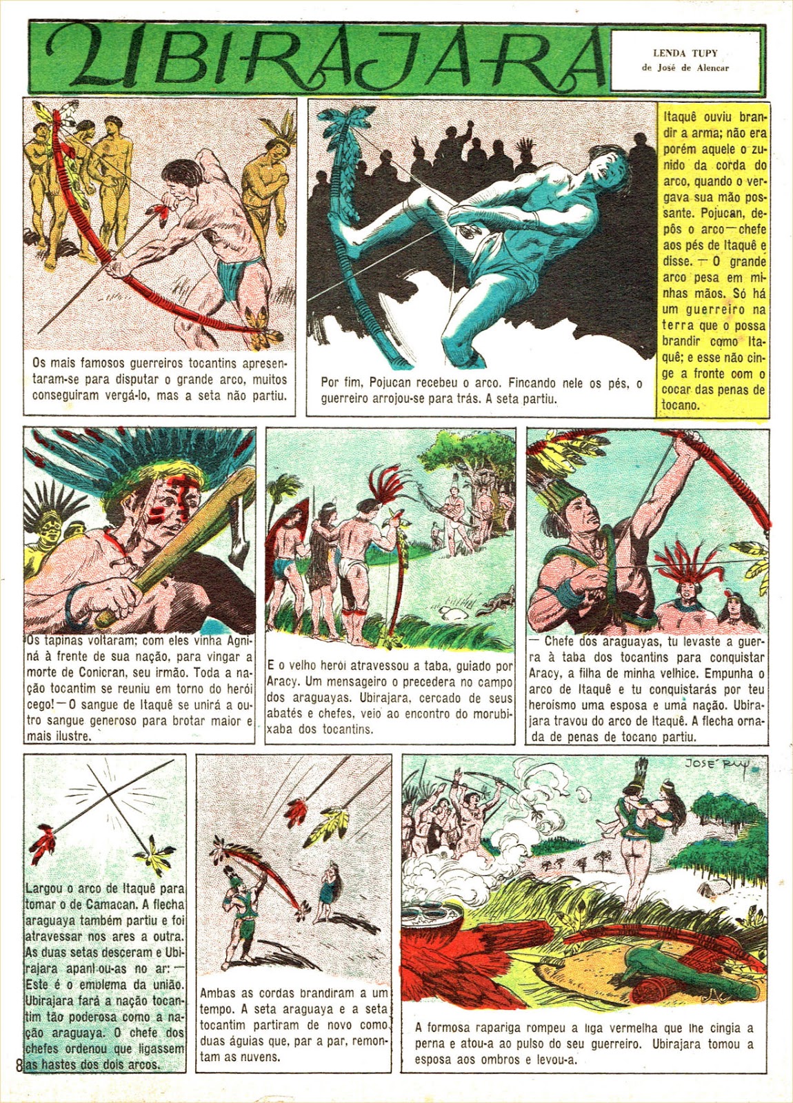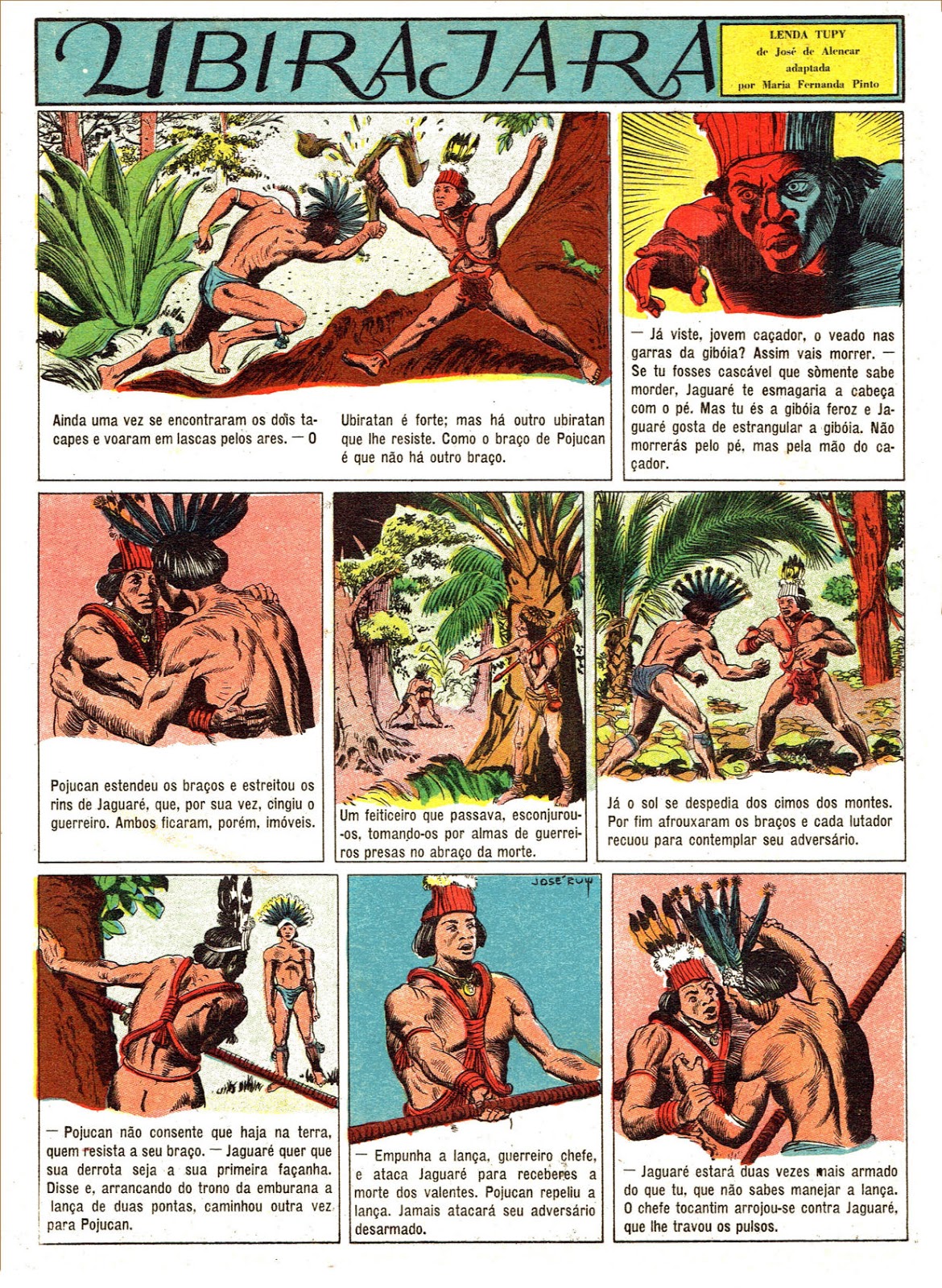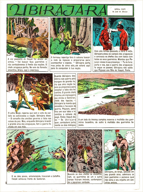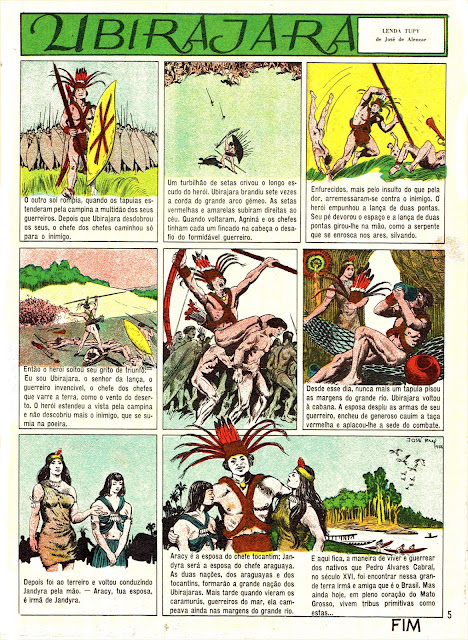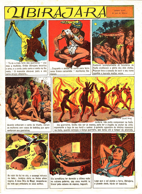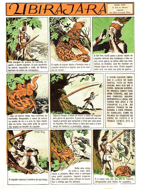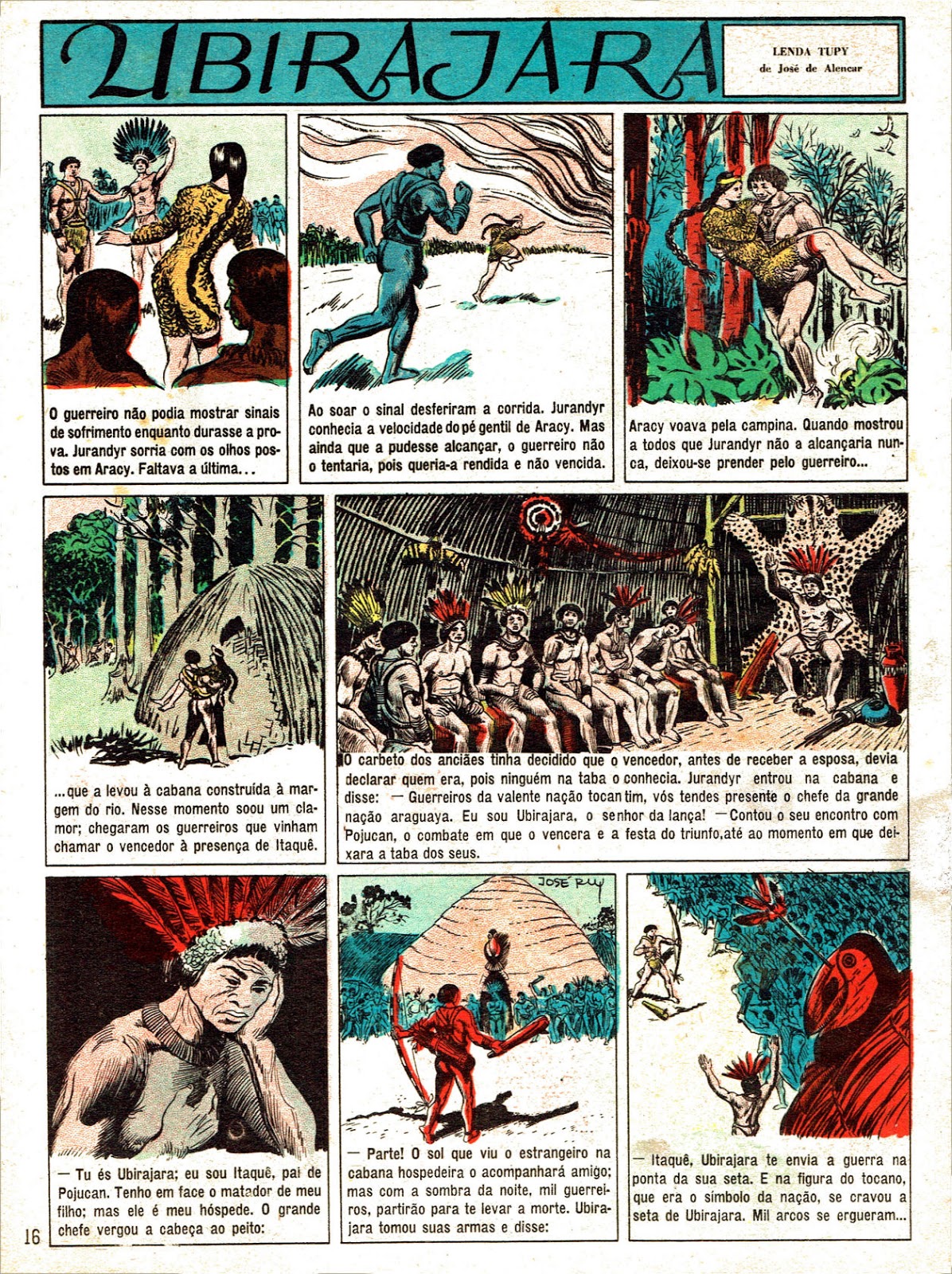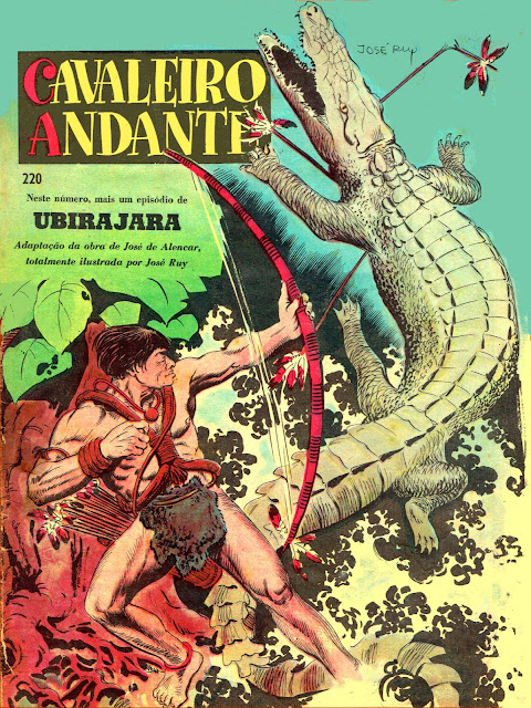 Numa semana totalmente dedicada à arte de José Ruy, aqui fica «Ubirajara», tal como foi publicado no Cavaleiro Andante, fascículos 210 a 229. «Ubirajara» é uma lenda tupi da autoria de José de Alencar, adaptada por Maria Fernanda Pinto. A mitologia tupi foi criada em tempos imemoriais e ainda hoje é cultivada por povos indígenas na América do Sul, designadamente, os guaranis.